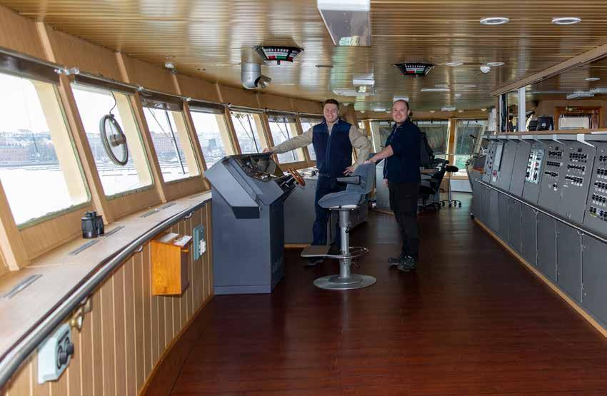 J/M Voiman perämies Ilkka Alhoke ja J/M Sisun yliperämies esittelivät Sisun komentosiltaa, jota uudistettiin laivan taannoisessa elinkaaripidennyksessä.