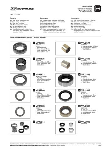 (l1) Usage en axe supérieur et inférieur (m1) Usage en axe supérieur uniquement (n1) Utiliser avec VPJ2469 (o1) Voir fiche technique (p1) Essieu rotatif de 50 degrés (q1) Essieu rotatif de 40 degrés (r1) Joint combiné pour arbre 3429217M91 (NG250SD depuis le 01/01/1992). Se référer aux caractéristiques techniques