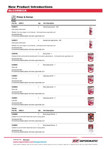 Accessories item For technical details please visit www.vapormatic.com Thinner Part No.