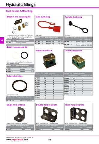 4 Hydraulic Hydraulic fittingscouplings Dust covers & Mounting Male dust plug