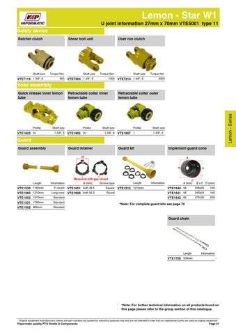 Lemon - Star W1 U joint information 27mm x 70mm VTE5001 type 11 Safety device Ratchet clutch