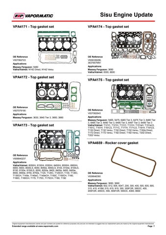 Applications Massey Ferguson: 5480 Valtra/Valmet: N142 Direct, N142 Versu