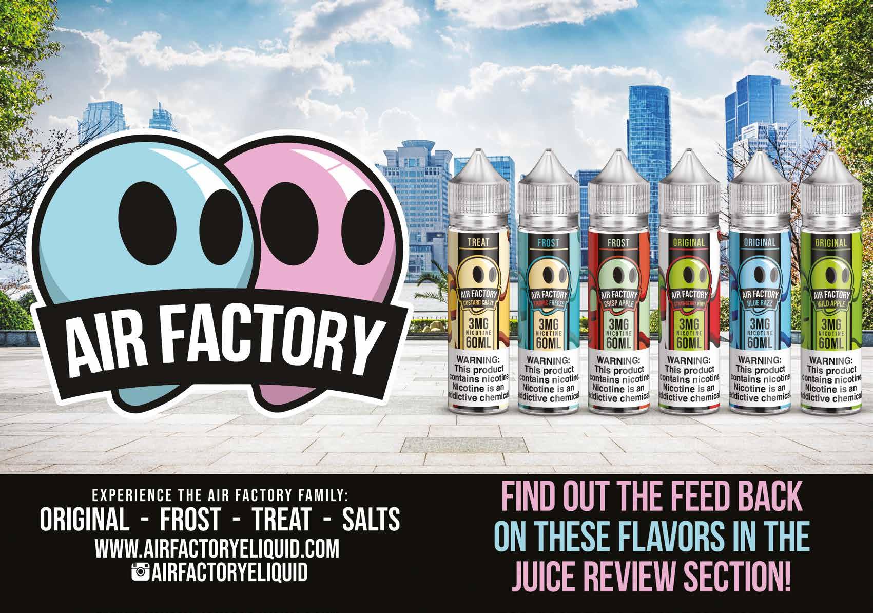 Every brand that offers a blue raspberry flavour seems to have an entirely different take on the profile and Air Factory is no exception. The top note here is a moderately sweet candy raspberry, with a nice helping of tartness on the finish and a sticky body. This is complemented by what seems to be candy blueberry, which is bringing some floral notes to the mix, along with a deeper sweetness and mild earthiness to the finish. There’s something else in the blend which is adding tartness, but it’s quite subtle and hard to identify, it could be a sour candy additive but there’s no way to be sure. A wellrounded blue raspberry mix.