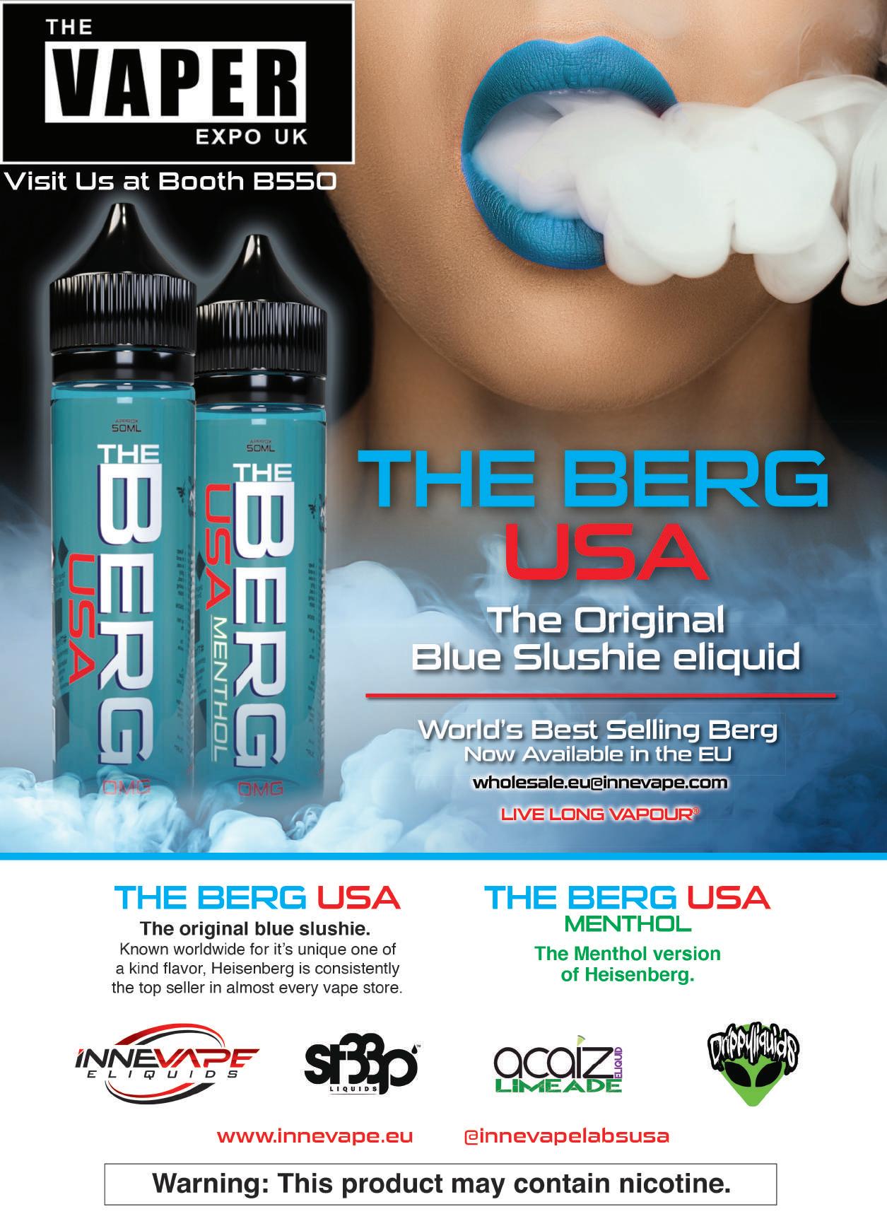 165 | VAPER EXPO SHOWGUIDE Warning: The above products will contain nicotine. www.nicselect.com France, Germany and Benelux Mrs Laurence Geli Tel: +33 6 88 40 53 97 Email: lgeli@alchemeurope.com NicSelect™ MANUFACTURED BY ALCHEM INTERNATIONAL. Thanks to our market-leading approach, innovation and renowned customer service NicSelect™ has become the nicotine of choice for e-liquids manufacturers globally. Our unique products and services can make a real difference to the quality of your products and your commercial success. When our customers ask, we listen... THANKS FOR ASKING SHORTER LEAD TIMES REACH TOBACCO ABSOLUTE & GMP COMPLIANT COMPLIANCE PURE NICOTINE & NICOTINE BASES HIGHER PURITY, LIGHTER TASTE NICOTINE SALTS NICSELECT VELVET SALT NICSELECT SMOOTH SALT NICSELECT RUSH SALT NICSELECT SILVER SALT NICSELECT CHILL SALT Buy direct from the manufacturer and enjoy the benefits of superior quality, premium service and a secure supply chain. Spain, Portugal, Greece, Italy and Rest of the World Mrs Mireia Soler Tel: +41 91 604 6921 Email: msoler@alchemeurope.com UK, Scandinavia and East Europe Mr Riccardo Santambrogio Tel: +41 79 914 5452 Email: rsantambrogio@alchemeurope.com We’re exhibiting - come and say hello at booth B915