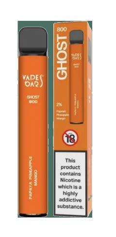 The Vapes Bars Ghost 800 disposable range comes pre-filled in a range of flavours all in 20mg strength nicotine salt.