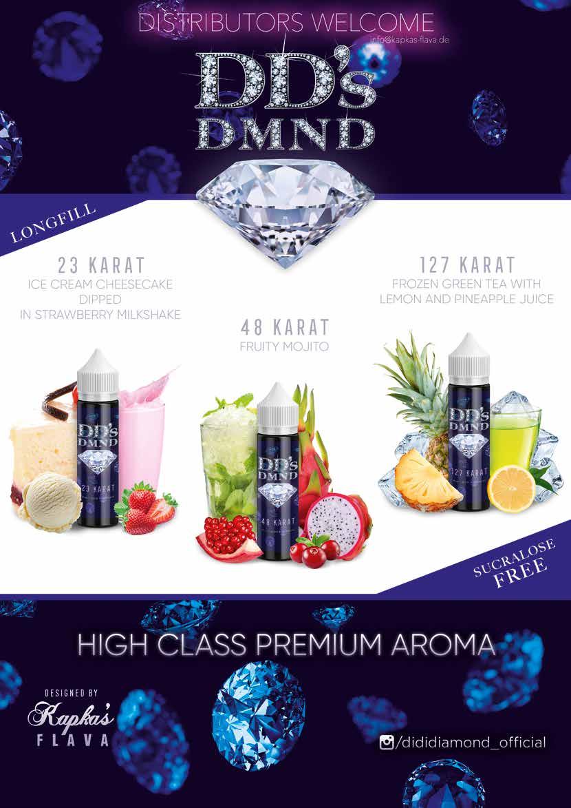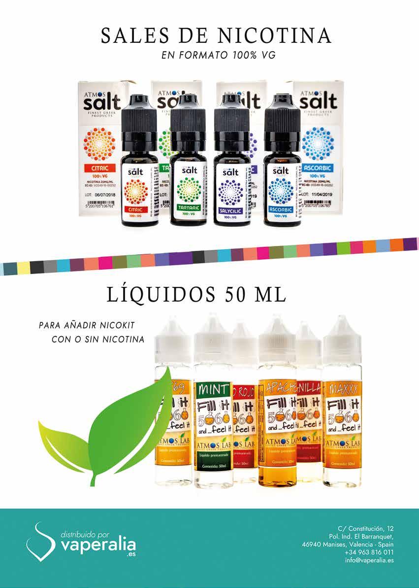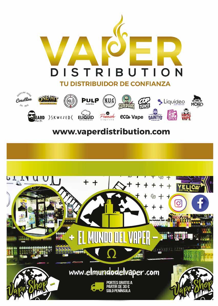 MEJOR REVISTA VAPE POR DOS AÑOS CONSECUTIVOS Gracias por tu apoyo CARTA DEL FINANZAS Directora financiera - Joanne Stubley Contable - Kris Worton Ejecutiva de Finanzas - Anna Difusco Ejecutiva de Finanzas - Mollie Smith GERENTE GENERAL Abida Razaque DIRECTORES David Turner & Pom Kaila DIRECTOR GENERAL Paul Caplin Editor Los productos de esta revista no pueden ser usados, comprados o analizados por ningún individuo menor de 18 años. Vapouround no apoya el uso de cigarrillos electrónicos o de estos dispositivos para individuos menores de 18; Si lees esta revista estás indicando que tienes mayoría de edad. Vapouround no respalda la aplicación inapropiada o el mal uso de nicotina, fumar o abusar de productos de la manera que sea. No aclamamos que los cigarrillos electrónicos y los dispositivos de nicotina ayudan a los fumadores con su adicción en sí, no tomamos responsabilidad de los efectos que los productos publicitados en nuestra revista pueden tener en los consumidores de nicotina. No hay garantía de que los productos de esta revista, incluídos los cigarrillos electrónicos y los dispositivos de nicotina le harán dejar de fumar. La opinión de esta revista se basa en la de los periodistas. Vapouround no se responsabiliza y deja en toda responsabilidad a terceros o piezas de opinión de agencias externas. Todas las marcas registradas, o productos de esta revista son propiedad de sus dueños. Para usar estas marcas, por favor contacte con la compañía
