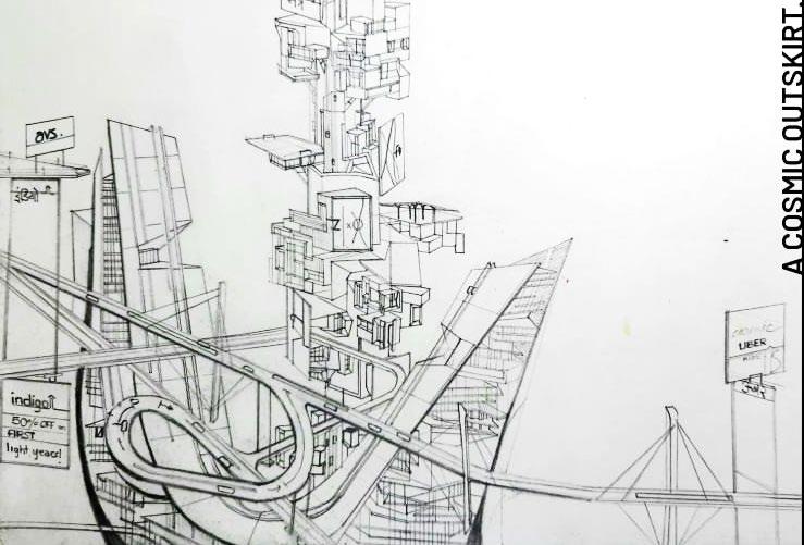 Image 03. A Cosmic Outskirt, 2020: A Conceptual Outline of a Type-II Civilization - A Portrayal of the Inherent Human Dichotomy, depicted through built spaces.
