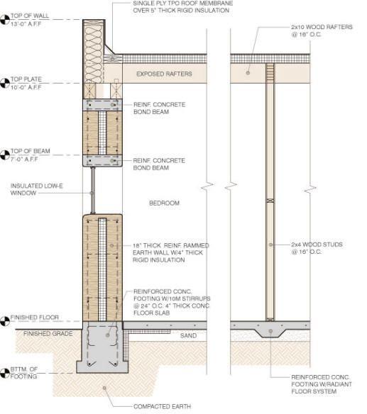 Rammed earth construction featuring a load-bearing structure and prefabricated slabThe constructions surrounding the site create a lot of waste soil which qualifies for rammed earth construction which is very cheap, functional, and ideal for the context.