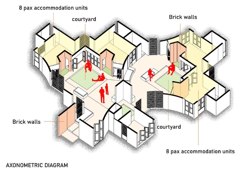 DORM ROOMSEach dorm room has an accommodation for 4 childrenwith shared BUNK BEDS creating the capacity of each house around 16.2 dorm rooms share a common study space.the rooms open up to the courtyards shared among each other.
