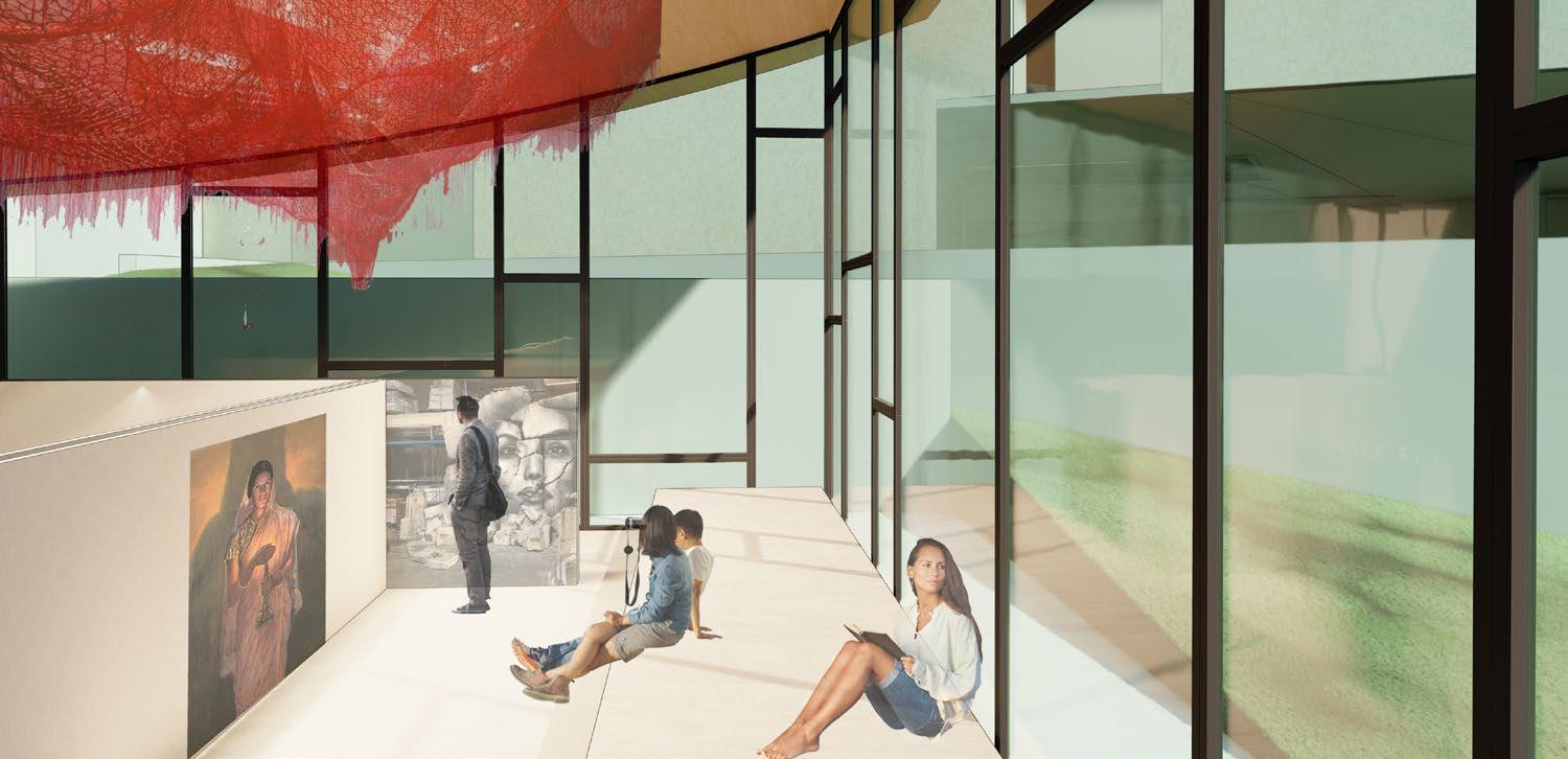 Using artwork as well as the gallery itself,the undulating roofing system represents the up-and-downs of our thought process,the subsequent interesting spaces formed inside are thought provoking,along with the gallery of discovery, one may for sure open the doors of self discovery and spirituality.