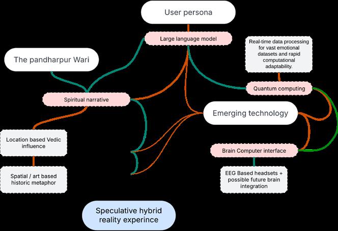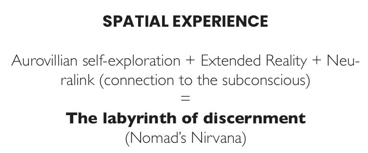 This project reimagines a space as an experiential extension of the Auroville city near Pondicherry, India, set in the Siloli Desert of Bolivia. It explores the integration of future technologies—such as extended reality, Neuralink, and BCI—to create a dynamic environment where the digital and physical worlds converge for spiritual enlightenment. The design is guided by the principle of discernment, ensuring that technological change promotes growth, balance, and fulfillment.