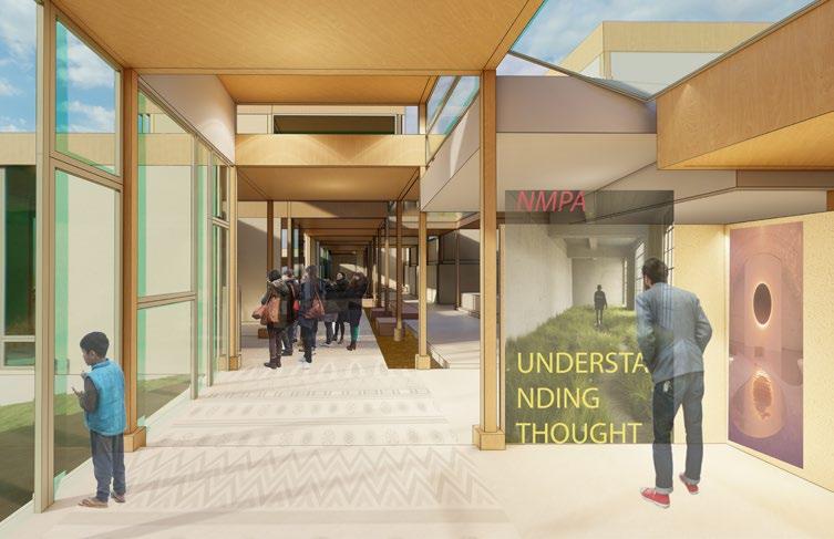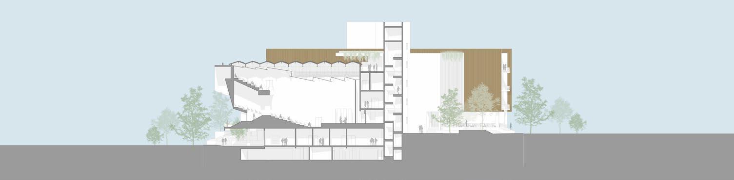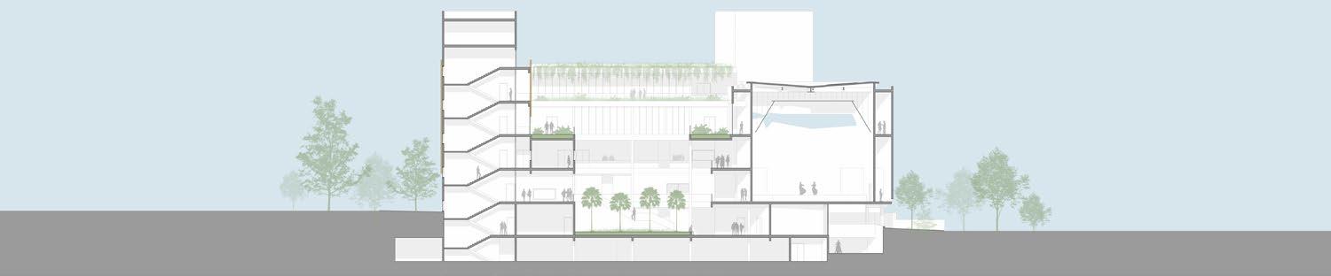 This becomes the generator of the master plan and also the internal organizer of the building. From the users perspective a place where they are free to roam, meet others like themselves. and discover spaces suitable for learning, work, play and contemplation.