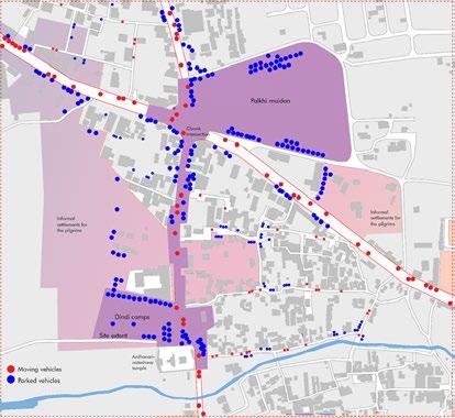 The figure below illustrates the path of the Pandharpur Wari pilgrims. It represents my research and analysis during the design dissertation, mapping key locations, moon phases (crucial for spiritual alignment), historical Yadava-period structures, and an approximate count of participants in the procession.