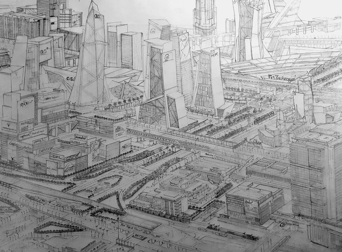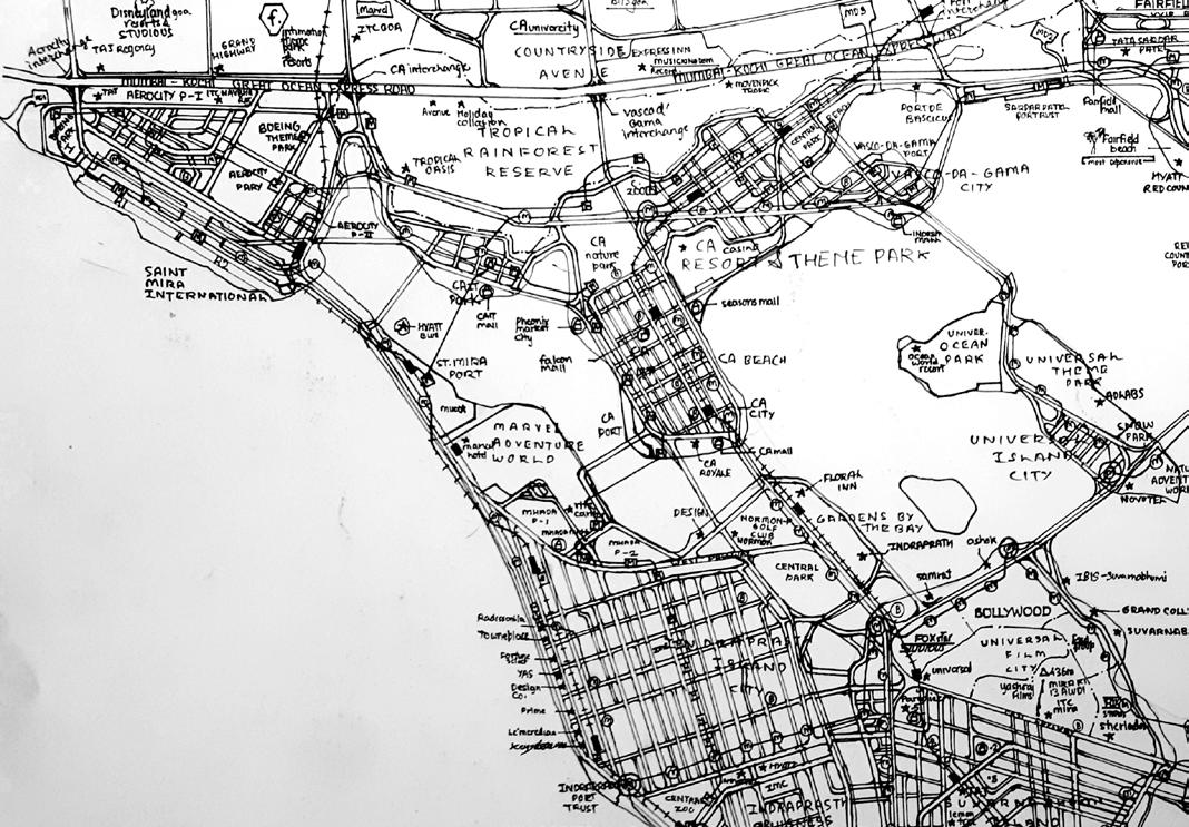 Image 05. Suvarnabhumi, 2017 (Age 16): An imaginary city featuring sector-wise divisions, a central business district (CBD), transit-oriented development, diverse geography, and various industries.