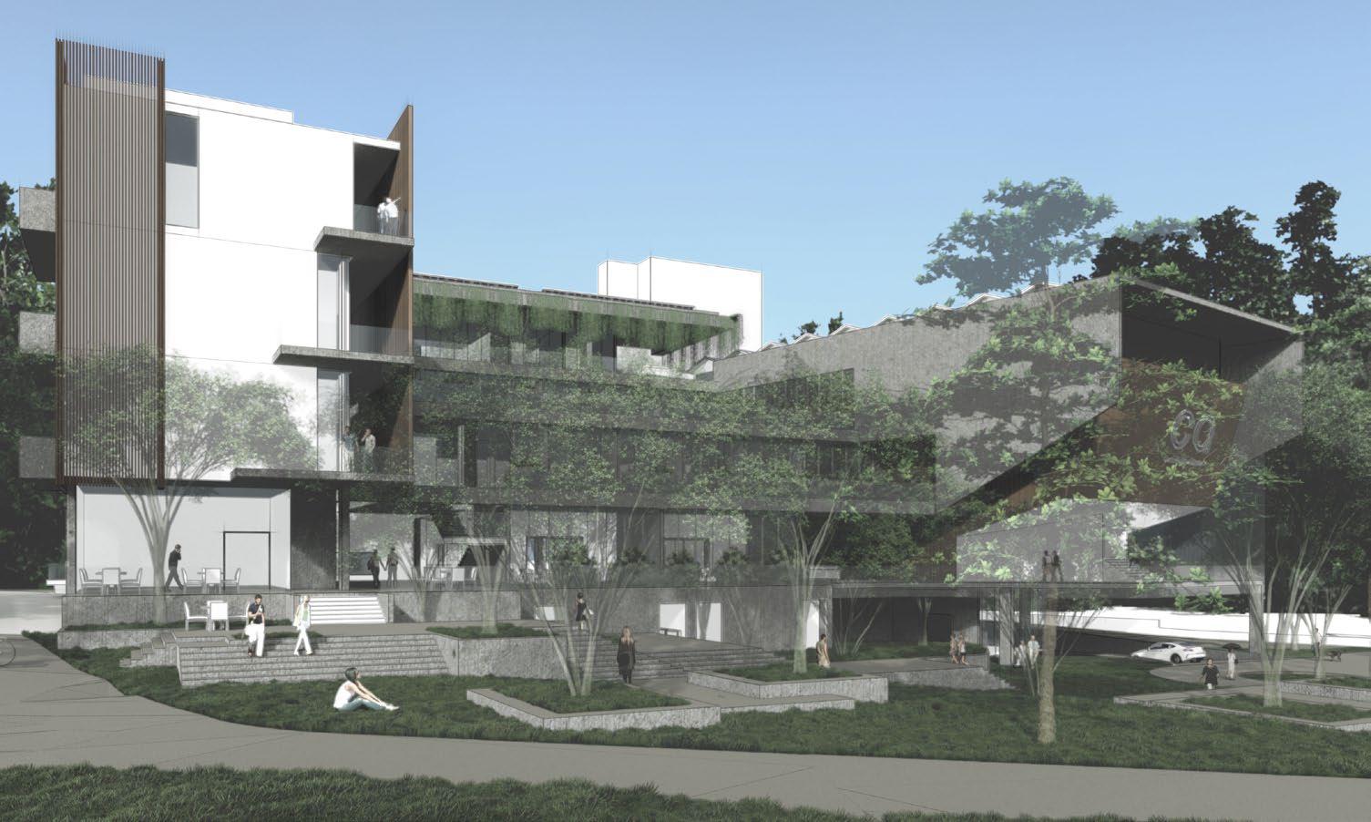 The design intent was to engage with these conditions and create a place that compliments the landscape in turn connecting to environs of the campus.