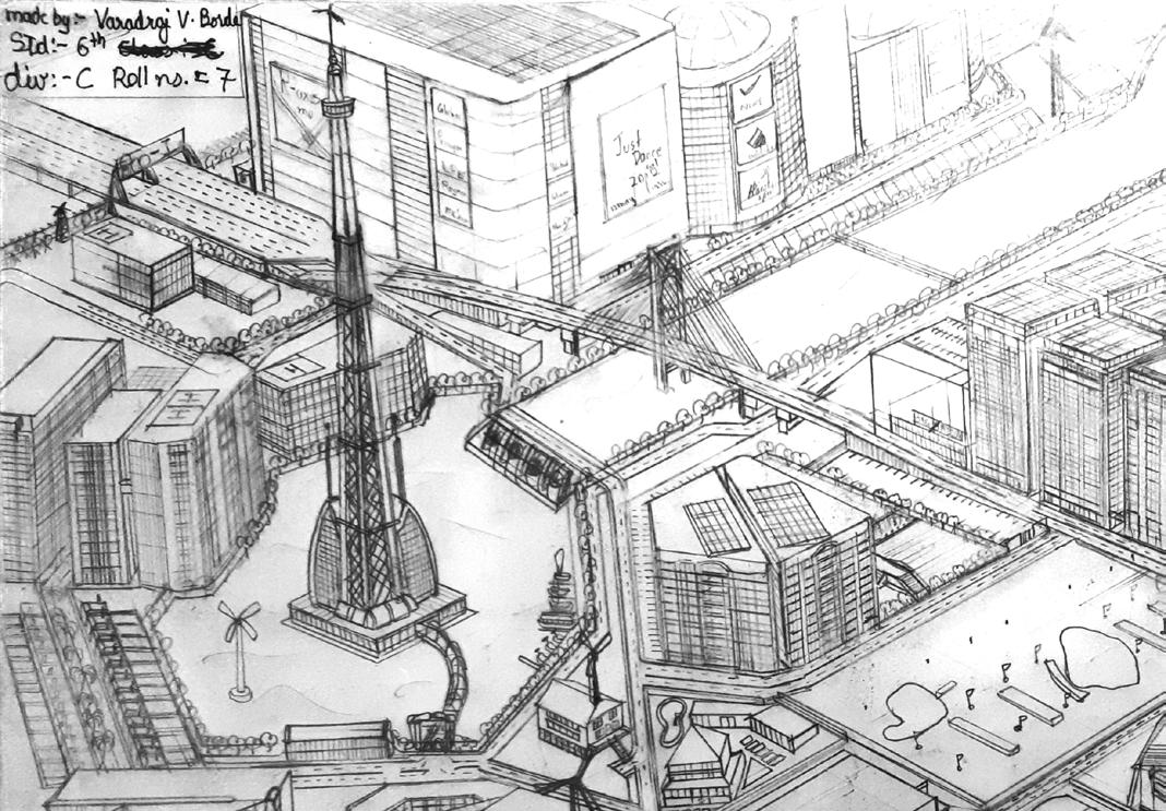Image 07. Urban Density; 2012 (Age 11) Imaginative effort to create a dense urban bird’s eye view.