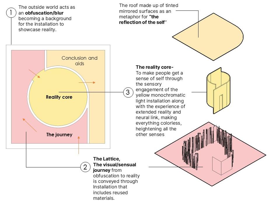 The overall planning of the gallery makes the user experience different types of perceptive illusions guiding through different galleries for perception which include-