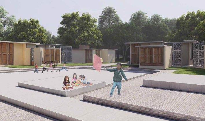 01 - The central courtyard is designed with residential quarters surrounding a children’s play area, serving as the focal point for all circulation patterns on the site. Different levels within the courtyard create distinct social spaces, accommodating various activities and fostering community interaction.