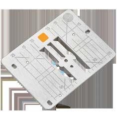 A talpak jobb és bal oldalára is feltehető, inch és mm beosztású sorvezető kiváló segítség a varráshoz. A sorvezetőt követve tökéletesen párhuzamos öltéssorokat varrhat, az inch és mm beosztás pedig segít abban, hogy a sorokat egymástól egyforma távolságra helyezze el.