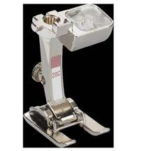 Ez a talp kimondottan a piék és a díszítő öltések ötvözésére való. Miután elkészítette a piéket, ugyanezzel a talppal közéjük gyönyörű díszítő öltéseket vagy díszítő szalagokat varrhat. A talp kiváló rálátást biztosít a varrófelületre.