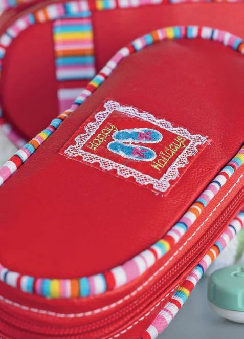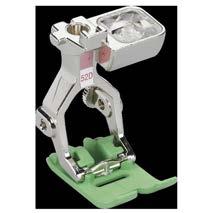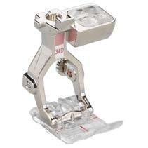 Ez a talp egyaránt használható díszítő öltések készítésére, gomblyukak varrására, perlé gyöngyfonalak felvarrására, illetve kagylószegélyek készítésére. Ezen felül még térhatású díszítőelemek varrására is alkalmas. A talp nagyszerű rálátást biztosít az anyagra, míg a közepén levő kis lyuk zsinórozáskor remekül vezeti a vékony zsinórokat.