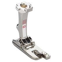 Mivel egyik fele magasabb, mint a másik, a talp egyenletesen tud haladni a különböző vastagságú anyagrétegeken. Használható vastag szalagok, tépőzárak és vékony zsinórok felvarrására, illetve keskeny és közepesen vastag paszpólok varrására is.
