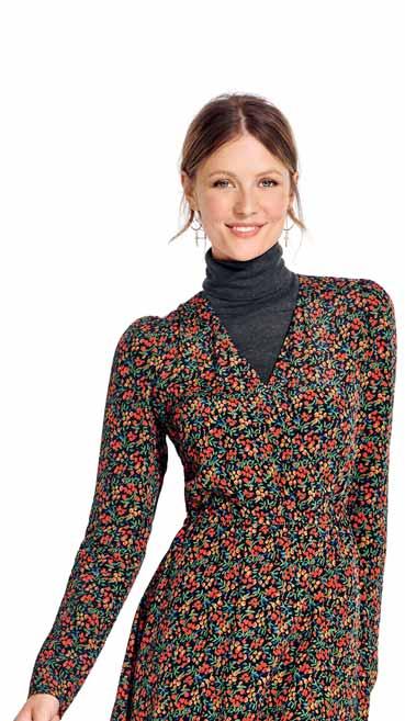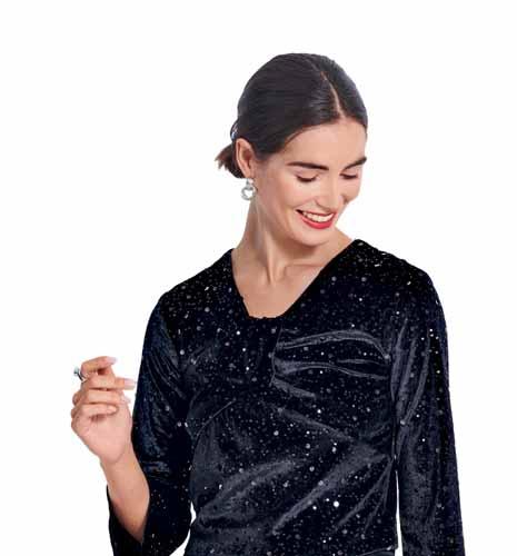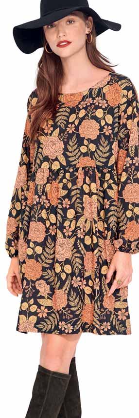 The days are getting shorter, the first leaves are changing colour – and summer dresses are slowly being replaced by knitwear & co. How nice, because now we can finally sew the latest autumn trends. What’s new? Cuts are becoming wider again, especially for trousers. Those who like to stay with a feminine look should simply wear narrow belts and delicate jewellery. Speaking of a style clash: The new athleisure style, much-loved by designers, also plays with the skilful combination of sporty and elegant pieces – sweatshirts, which we know anyway from sport, are styled with eye-catching frilled blouses and leather skirts. Leather or vegan leather is the all-rounder of the season. Fake fur fabrics are also particularly popular this winter if you like things warm and cosy. Taffeta is making a comeback for the big moments, preferably in silk. When it comes to colours, the black and white duo is a must-have, often with royal blue as an accent. If you like it more feminine, go for a pink-peach: The colour radiates warmth and modern elegance. For the fashion-conscious, colourful swirl prints are the (retro) trend of the season. The psychedelic, swirling patterns inspired by the 1970s put you in a good mood – even on the dullest of days. Thanks to the focus on winter floral patterns, romantics also get their money’s worth.