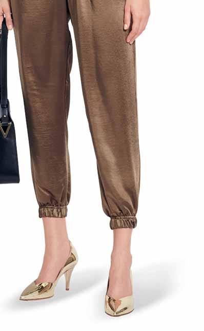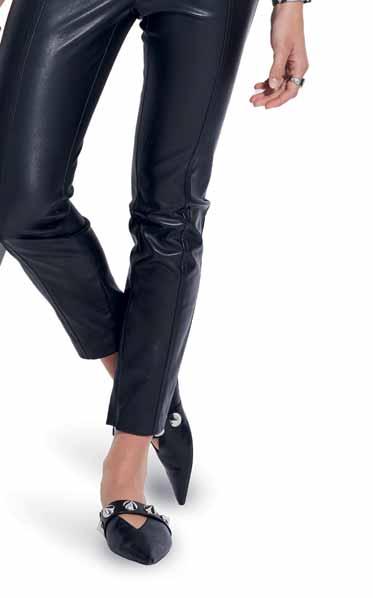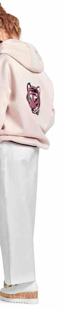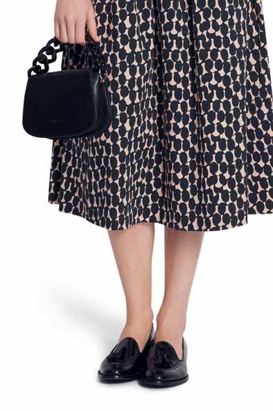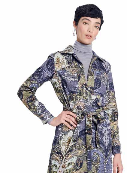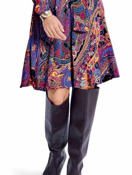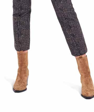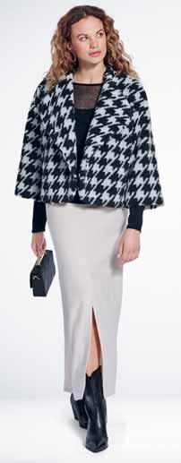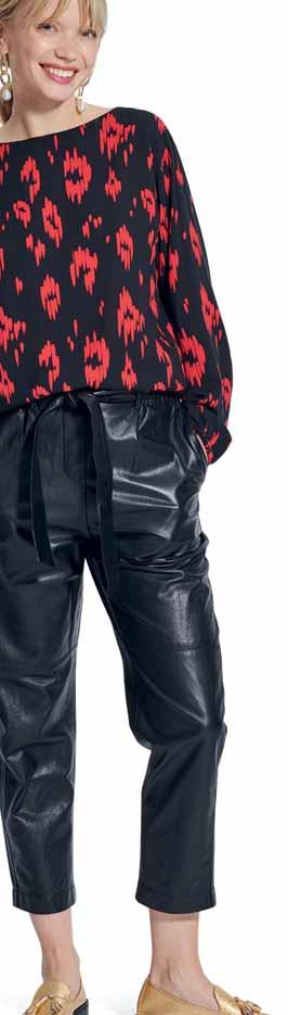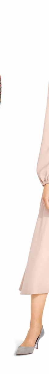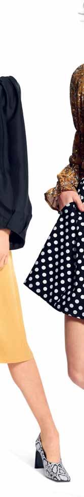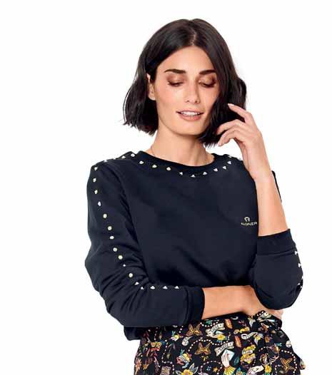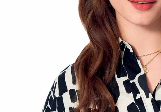 Was neu ist? Die Schnitte werden wieder weiter, besonders bei Hosen. Alle, die es trotzdem feminin lieben, tragen einfach schmale Gürtel und filigranen Schmuck dazu. Apropos Stilbruch: Auch der neue, von den Designern heißgeliebte Athleisure-Style spielt mit der geschickten Kombination von sportlichen und eleganten Teilen – Modelle wie Sweatshirts, die wir eigentlich vom Sport kennen, werden mit auffälligen Rüschenblusen und Lederröcken gestylt. Als Material ist Leder bzw. veganes Leder der Allrounder der Saison. Auch Fake-Plüschstoffe sind diesen Winter besonders angesagt, wenn man es gerne warm und kuschelig hat. Für die großen Momente erlebt Taft ein Comeback, am liebsten aus Seide. In Sachen Farben ist das Duo Schwarz-Weiß ein Must-have, gerne auch mit Royalblau als Akzent. Wer es weiblicher mag, greift zu einem Rosa-Peach: Die Farbe strahlt Wärme und moderne Eleganz aus. Für Modemutige sind bunte Swirl-Prints der (Retro-)Trend der Saison. Die von den 70er-Jahren inspirierten, psychedelisch wirbelnden Muster bringen gute Laune – auch an noch so trüben Tagen. Durch den Fokus auf winterliche Blumenmuster kommen aber auch Romantikerinnen auf ihre Kosten.