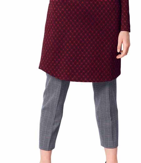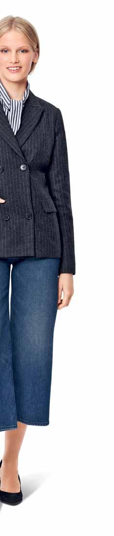 Details siehe Schnittpackung · Pour les détails, voir notre kit de patron · For details, see pattern envelope · Detalles, éase el paquete de patrones ACHTUNG ! Bei kariertem Stoff erhöhter Stoffverbrauch. ATTENTION ! Pour le tissu à carreaux compter un métrage supérieur. IMPORTANT ! Extra fabric required to match plaids. ¡ATENCIÓN ! Para tela a cuadros se necesita mayor cantidad. AB: normal weit, semi-ajusté, semi-fitted, semi-ajustado