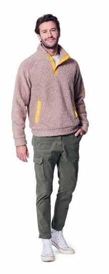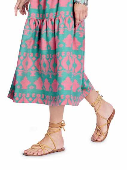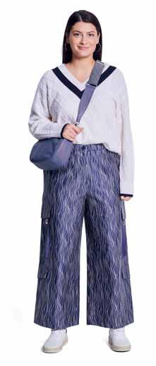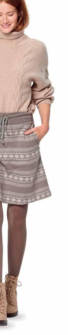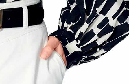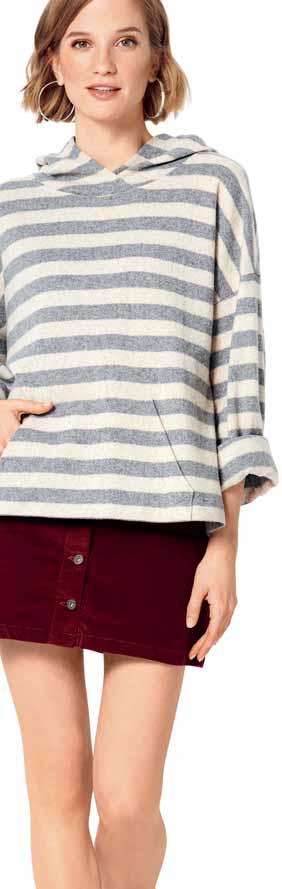 Bei Verwendung von Bordürenstoff ändert sich die Schnittauflage und der Stoffverbrauch. L‘utilisation d‘un tissu imprimé bordure modifie le plan de coupe et le métrage du tissu. The use of fabric with a border print will alter the cutting layout and fabric requirements. Si se utiliza tela con cenefa, cambiará la colocación de los patrones y la cantidad de tela necesaria.