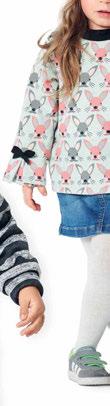 Recommended fabrics Jersey, sweatshirting, fiber fleece Tela recomendada Punto jersey, telas de sudadera, fleece