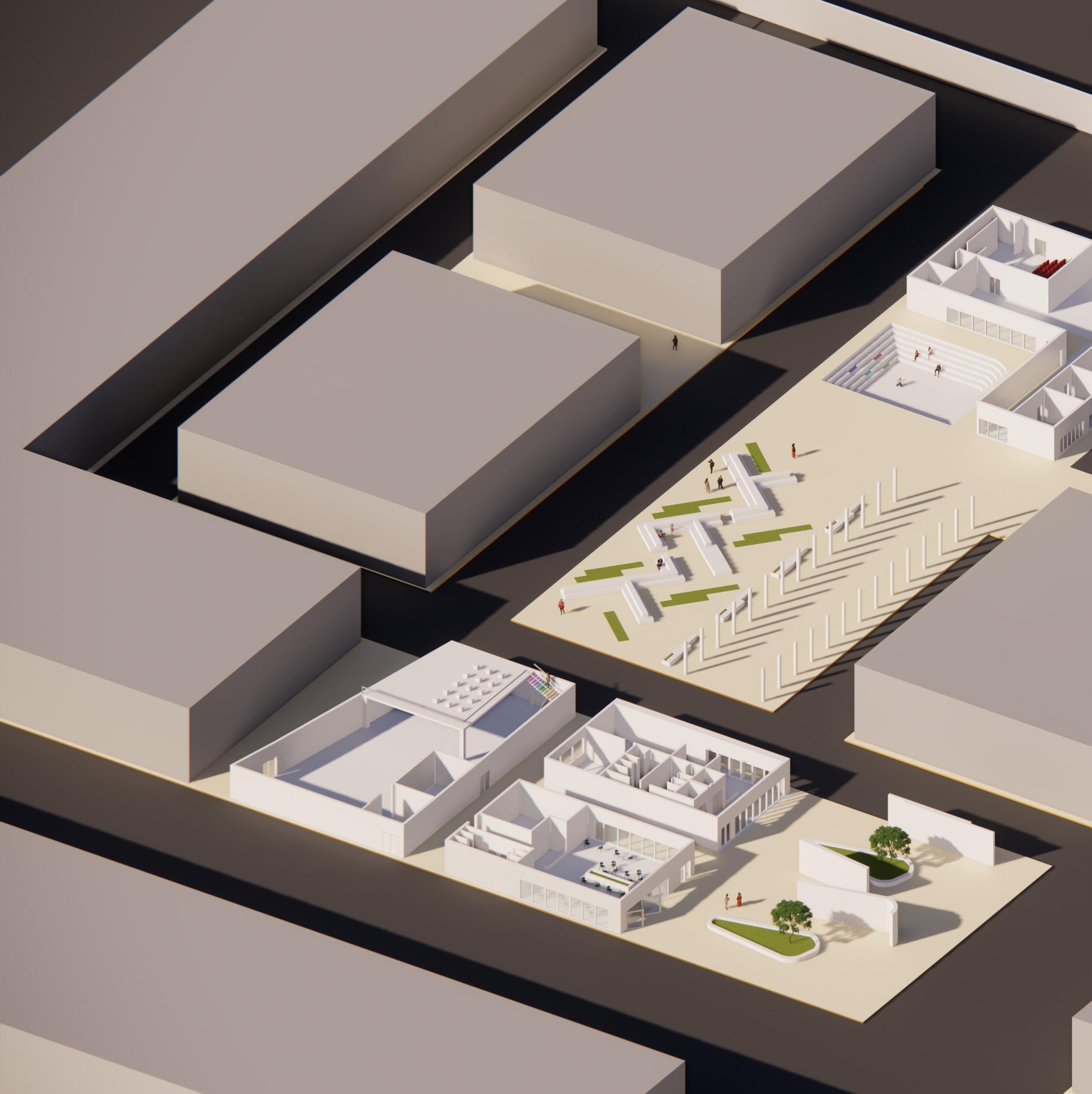 Blocks were carefully removed to make way for ADDED FUNCTION and to create a more LIGHT AND AIRY ZONE without affecting the EXISTING CENTRE (Concrete -OMA), The Parasitic Nature of the inroduced project aloows for EASE OF MOVEMENT.