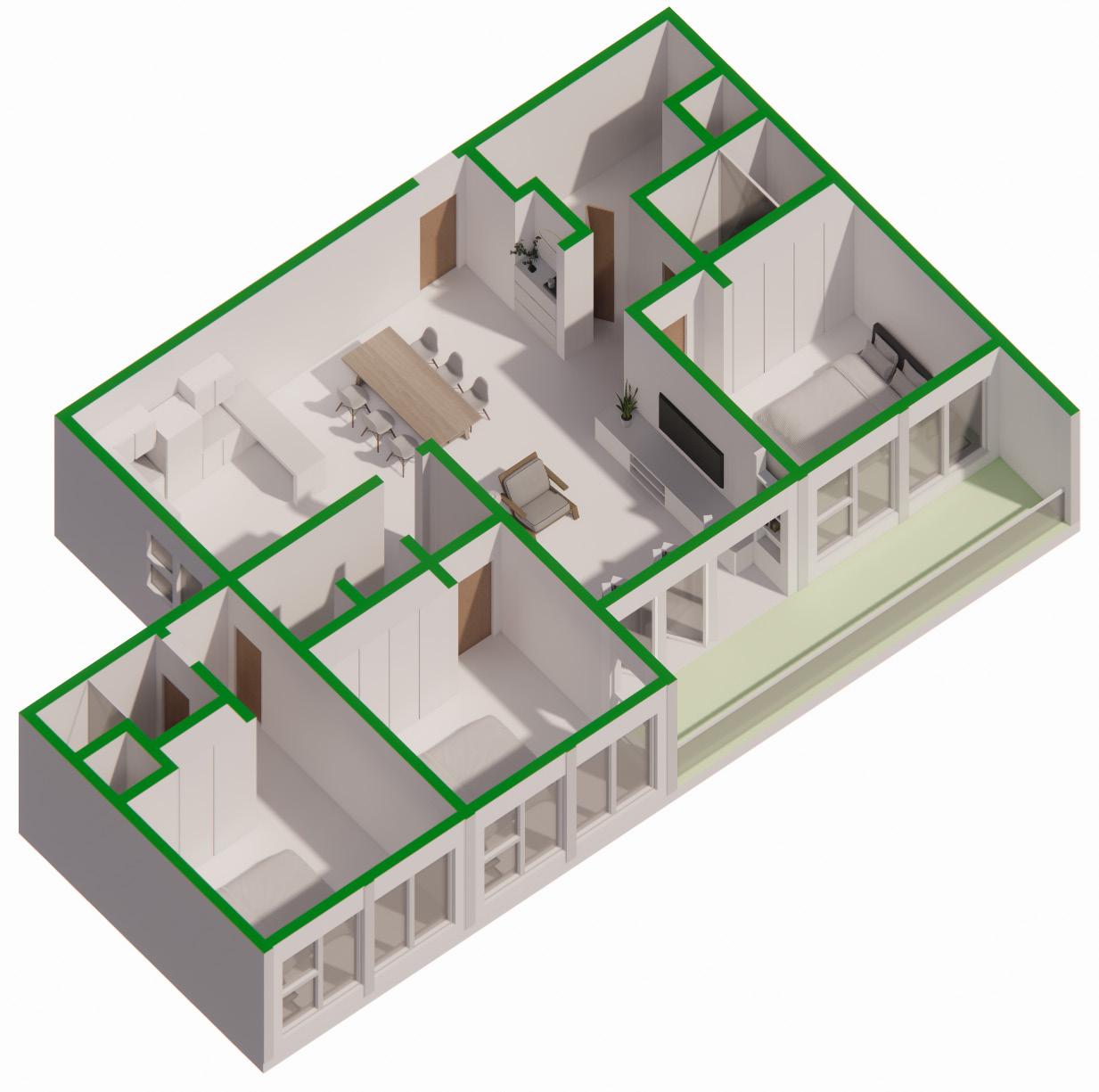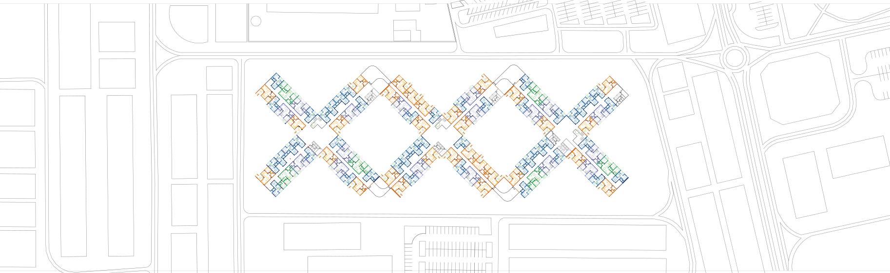 Space planning and arrangemnet of units to effectively combine units With the consideration of Light Wells and Social Spaces in mind