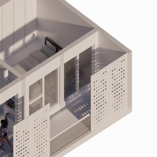 RESIDENTIAL UNIT • BED SPACES • CO – STUDY SPACE/ LIBRARY PRIVATE OFFICE SPACE • Nested Between the existing units BALCONY SPACE • For Movies and Presentations • Overlooks the courtyard 16 17 21