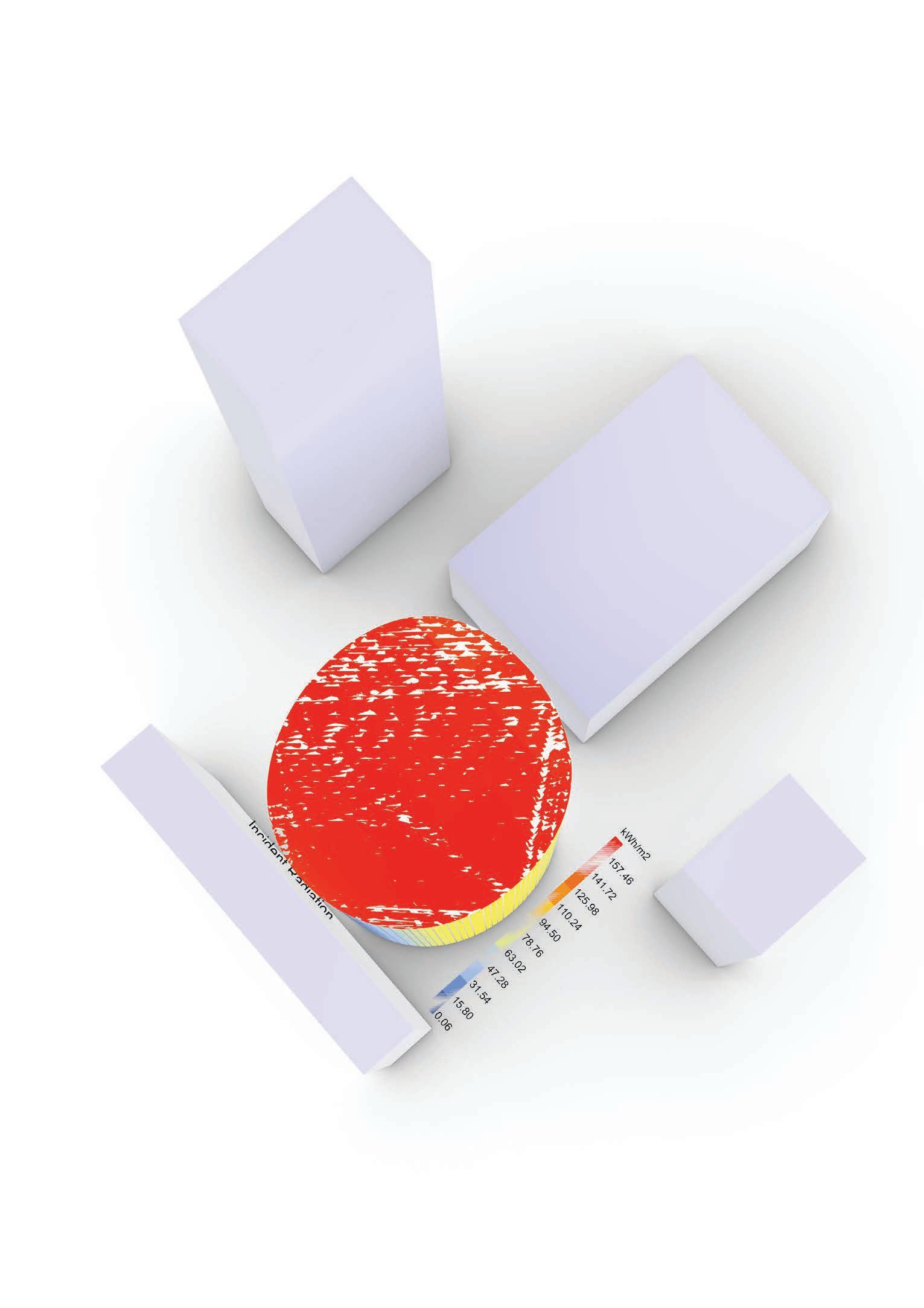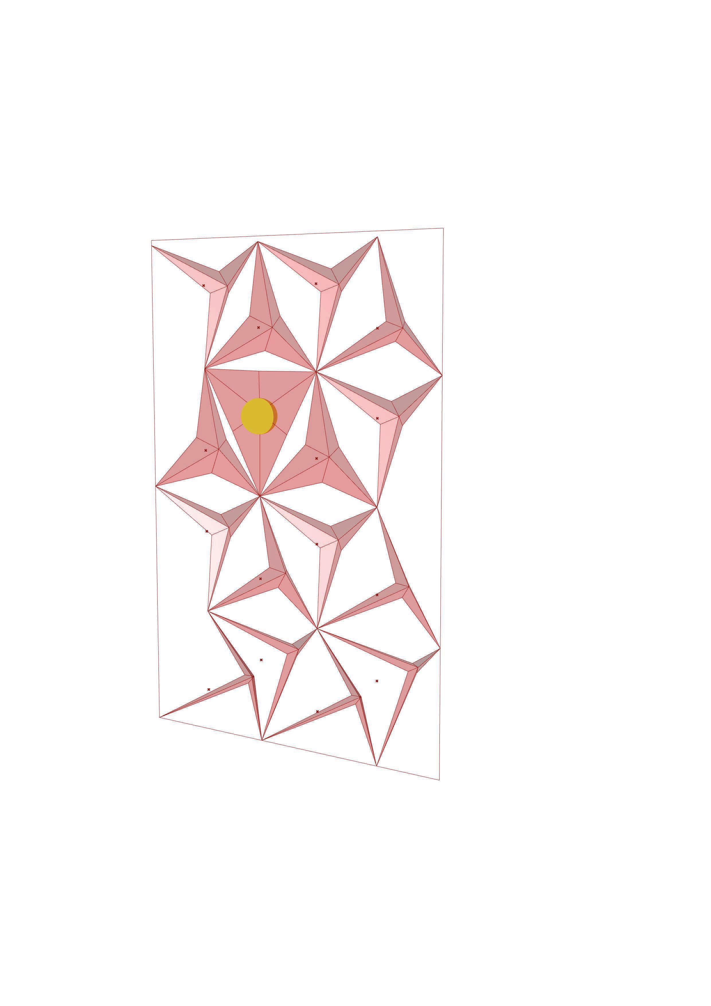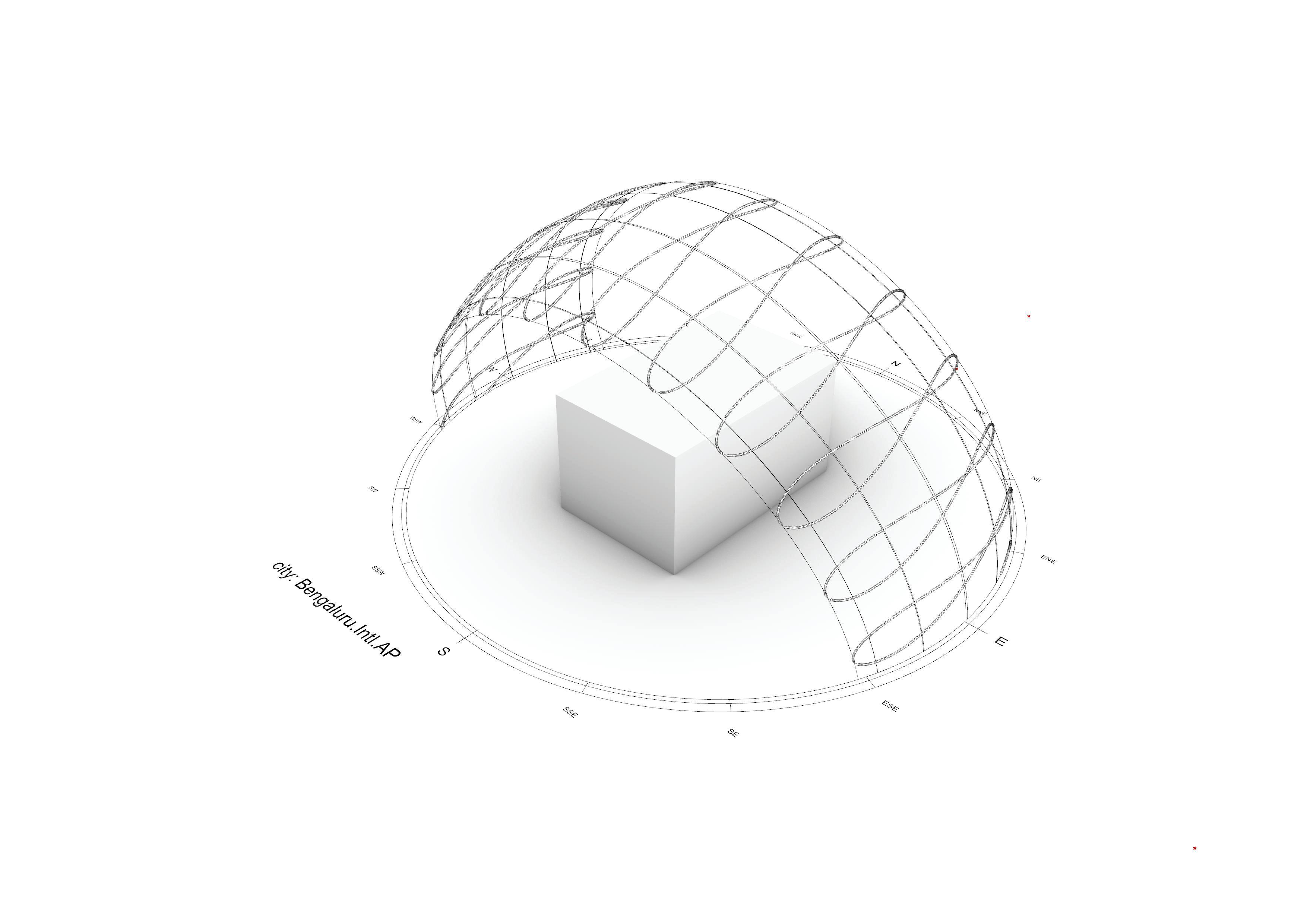 A triangular mesh surface is developed as a facade skin. This surface is then linked to the positioning of the Sun such that the panels that are in close proximity to the Sun are closed and vice versa.