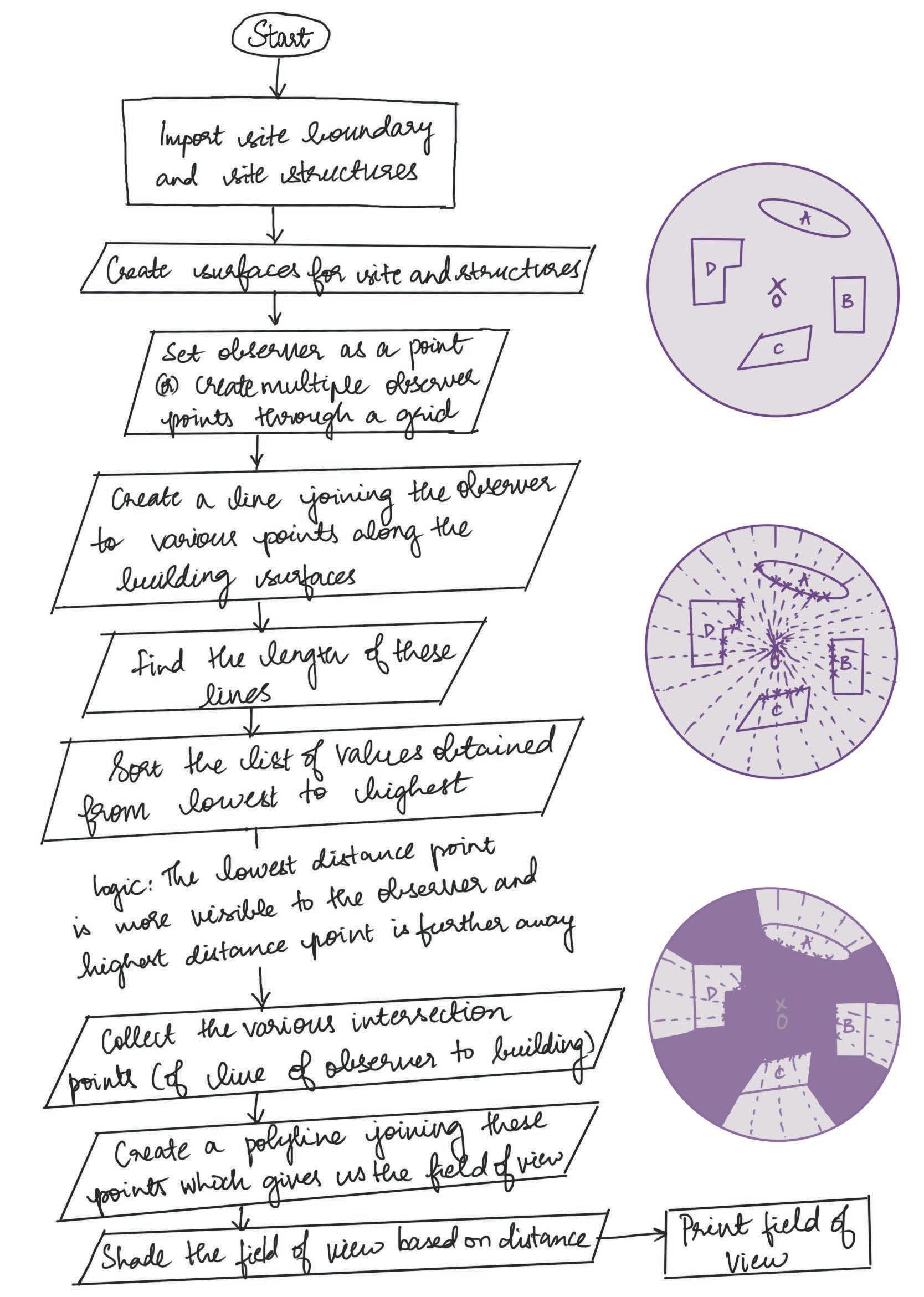Isovist refers to the percentage of view that a person gets from a partcular point. Through this process, we can determine the best viewable position on the site to place structures.