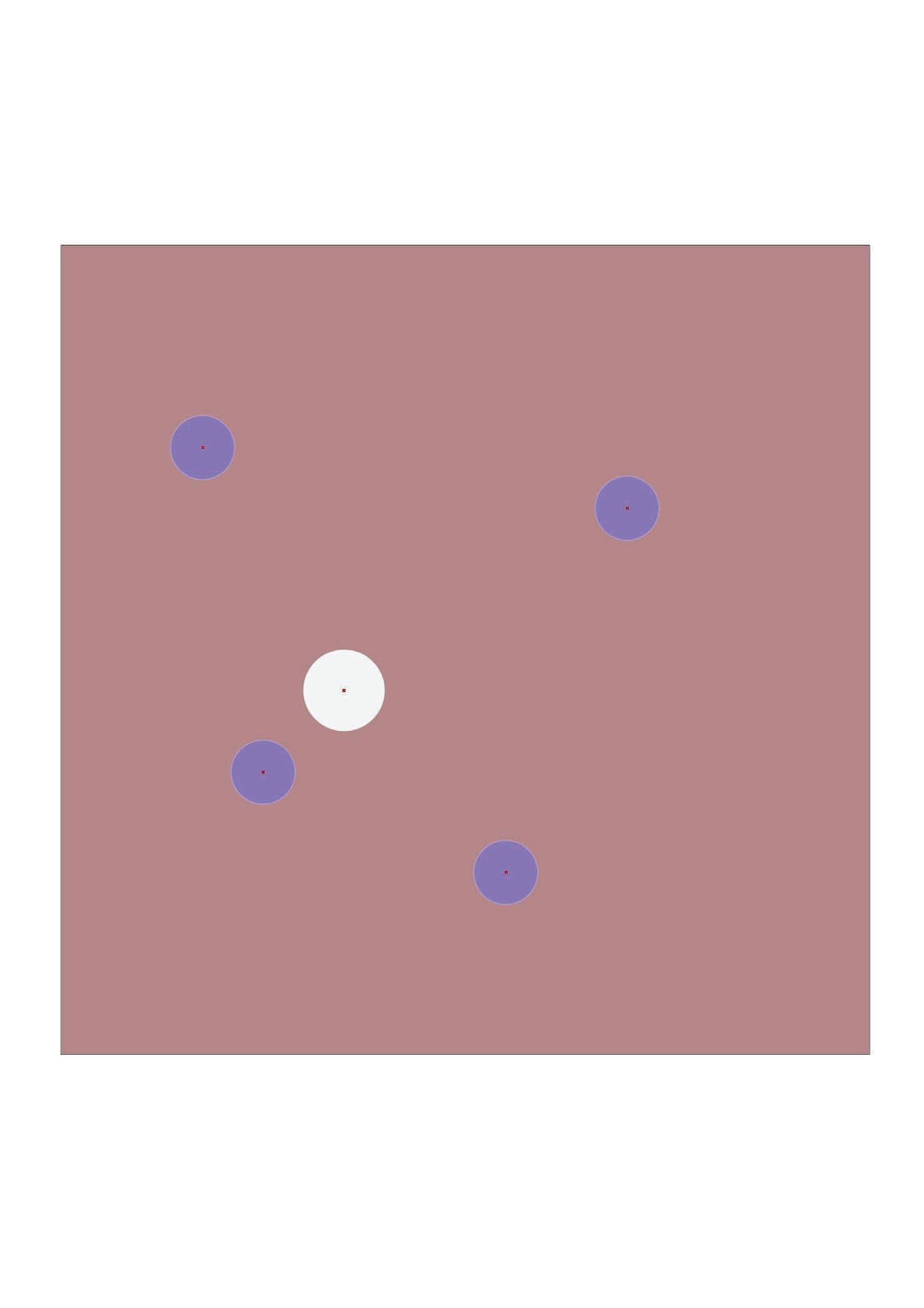 A varied point is placed on a plane with different circular surfaces. The surface sizes are varied according to their proximity to the point.
