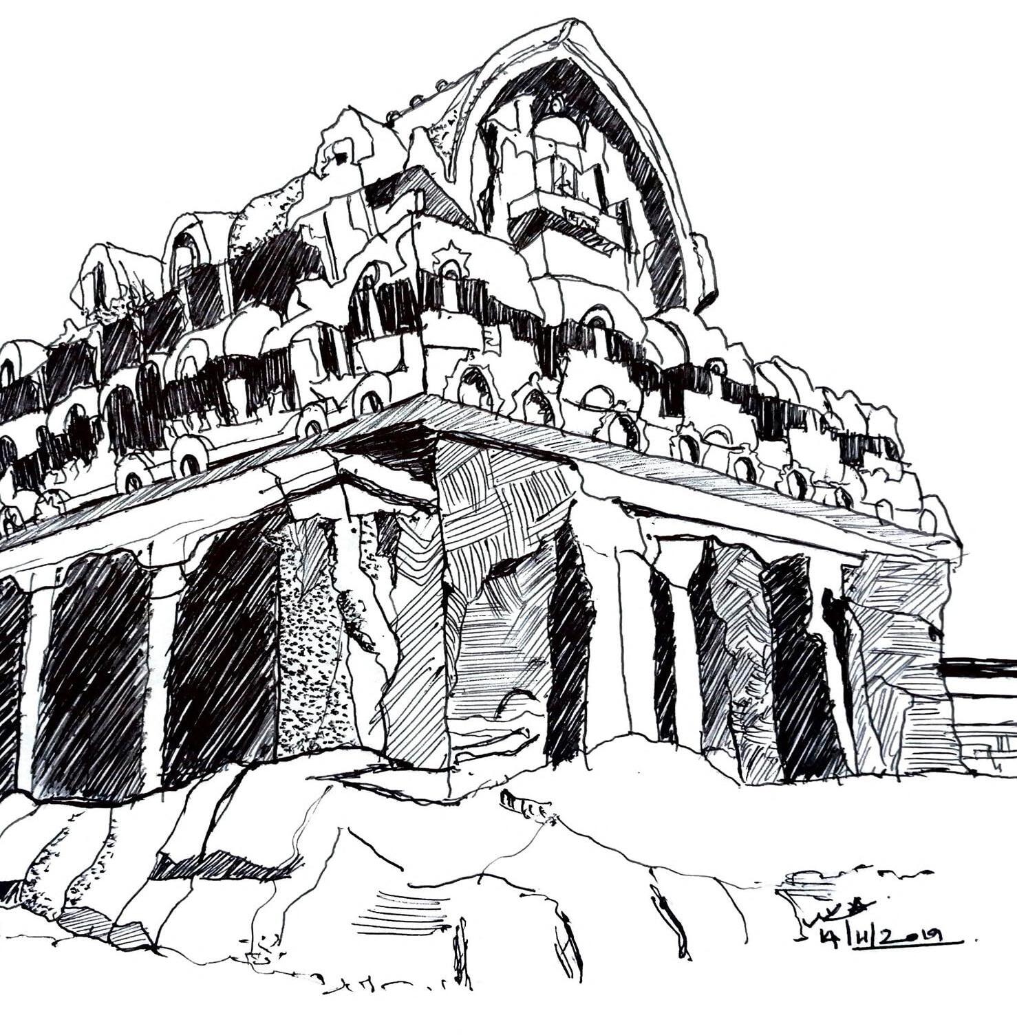 FIVE RATHAS, MAHABALIPURAM LIVE SKETCHING | PEN AND INK