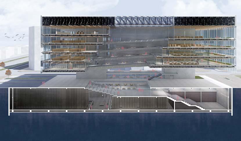 The entire project has been carefully conceived following the requirements of the body as well as trying to follow sustainable protocols and LEED suggested technologies. BIM (Building Information Modeling tools such as Revit, Tekla, Synchro 4D have been utilised for the development of the library design.