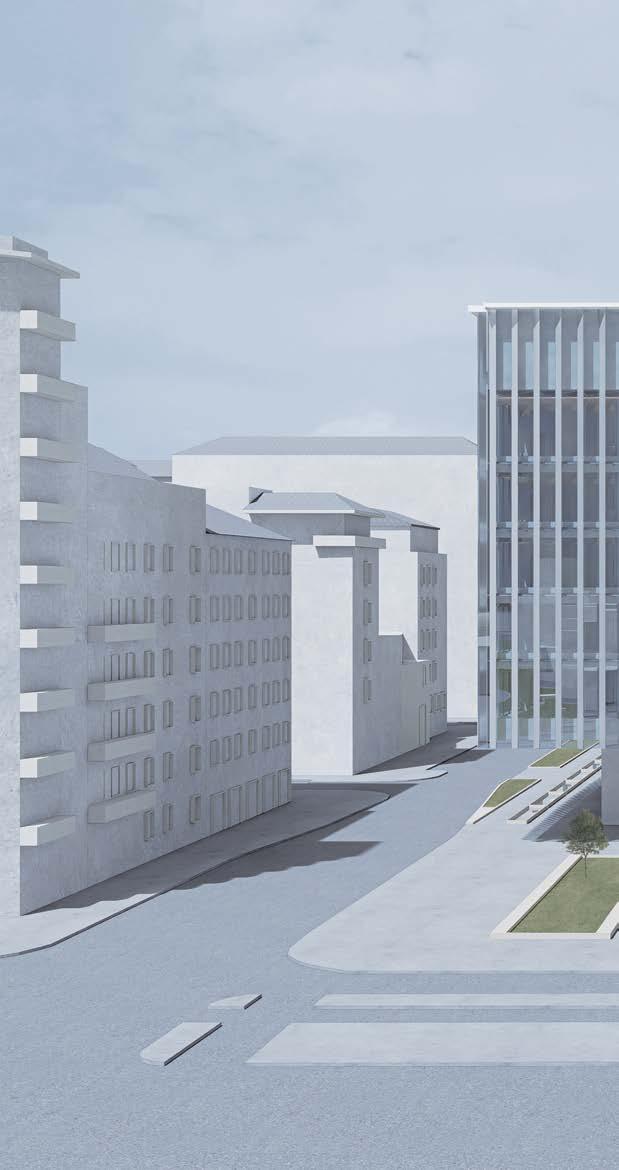 Facade renders, plans of this project and interior designs of similiar typo projects have been showcased.