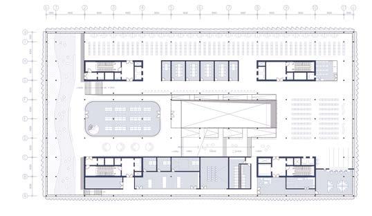 This is achieved with the help of a central ramp transitioning from traditional reading spaces to innovative reading areas with an unique architectural quality. The ramp also directs the user towards the centre of Milan culminating at the Panaromic view making the new BEIC library a symbolic building of the site and also Milan.