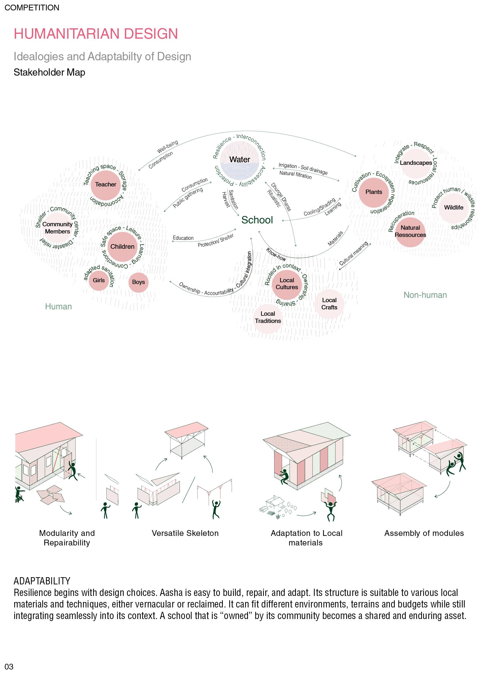 A school is more than just a place of education. It can be a community hub, craft center, even an artistic site. But above all, it is a solid ground when everything else fails. To this aim, Aasha is envisioned as a durable and resilient solution, designed not only to withstand environmental challenges but also to be easily replicated across communities.
