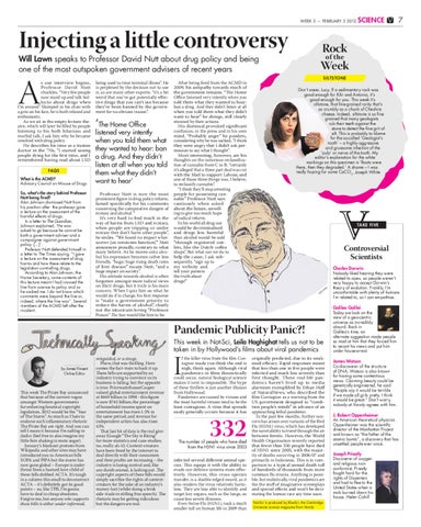 s our interview begins, Professor David Nutt chuckles, “Very few people now stand up and talk bollocks about drugs when I’m around”. Slumped in his chair with a grin on his face, he is both relaxed and enthusiastic. As we sit in the empty lecture theatre, which will later be filled by people listening to his both hilarious and morbid talk, I ask him why he became involved with drug policy. He describes his time as a trainee doctor in the ‘70s, “I started seeing people dying for the first time, and I remembered having read about LSD