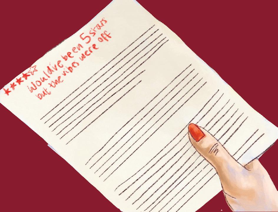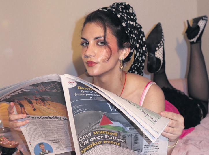Amid Week Five, Vulture provides some perfect distractions as the essays pile up. We return with another eatre review (p.25): the star-spangled performance of e Great Gatsby, which transports the audience back to the Jazz Age. A double-page spread in Fashion highlights (p.26-27) the political power of clothing, whether it’s overt resistance or subliminal messaging.