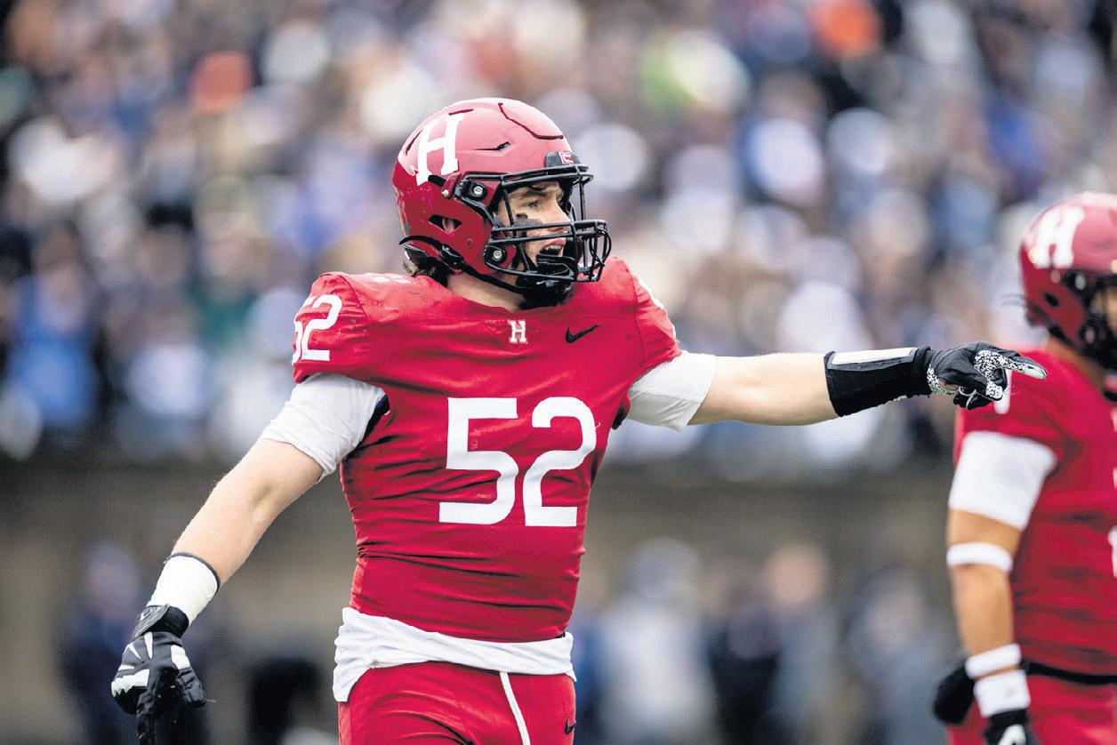 At Harvard there was, of course, a transition, being a very di erent environment from Arizona. “I de nitely learnt some lessons in my rst year, but rolling into my later years, I wanted to really focus on my grades and keep them as high as possible. It became a process of rinse and repeat both in the classroom and on the pitch.” During college, Locnikar su ered a signi cant setback as he had a nasty knee injury, which kept him out of action for much of junior year. However, in true Locnikar style, he bounced back to play in several important games in his senior year, notably against the University of Pennsylvania: “I was able to make big tackles against their heavy running o ence. Being from special teams and defence, it was important that I made an impact.” In fact, Locnikar was on the Harvard roster that tied the Ivy League Championship with Yale.