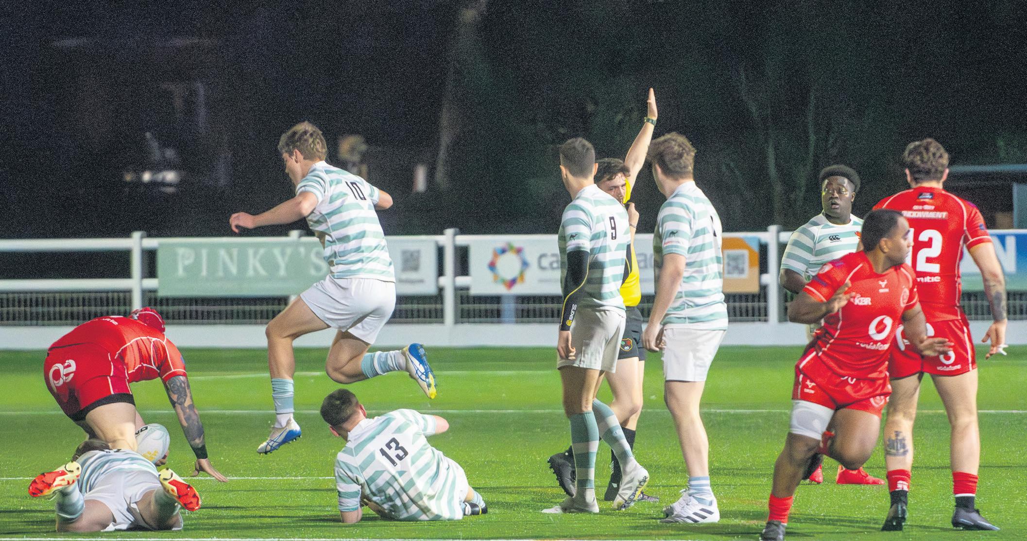 It would have been easy for Cambridge to dip their heads and surrender their efforts against an evidently talented opposition. Rallying calls from the Blues captain kept body language positive however, and they had the nal say before half-time. Kennedy ung the ball wide to his y-half Nate Bottomley, who played a deadweight grubber to the corner that was smacked