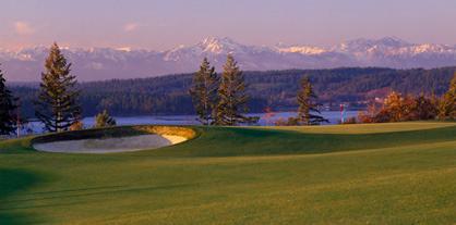 Sight lines are deep and distant from many points on the course — to the San Juan Islands and Vancouver Island in the west, to Port Townsend and Port Angeles to the south-southwest. Its location in the rain shadow of the Olympics gives it relatively dry conditions compared to wetter western Puget Sound courses.