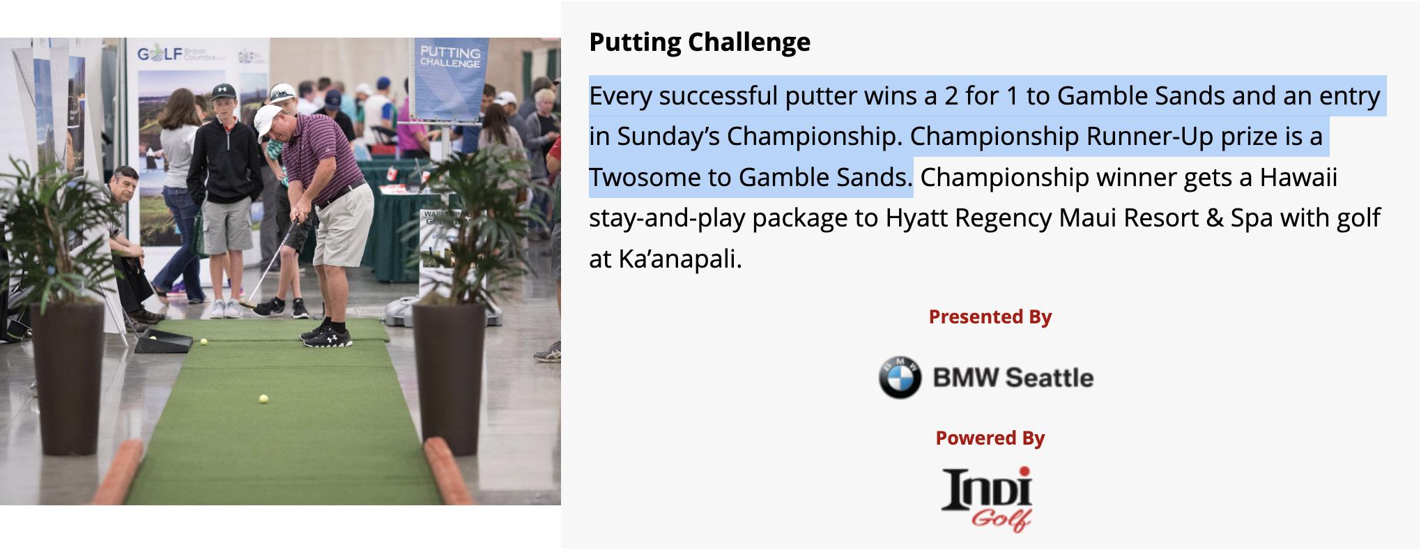 Every winner will be invited back Sunday at 3:30 p.m. to compete in the Putting Championship!