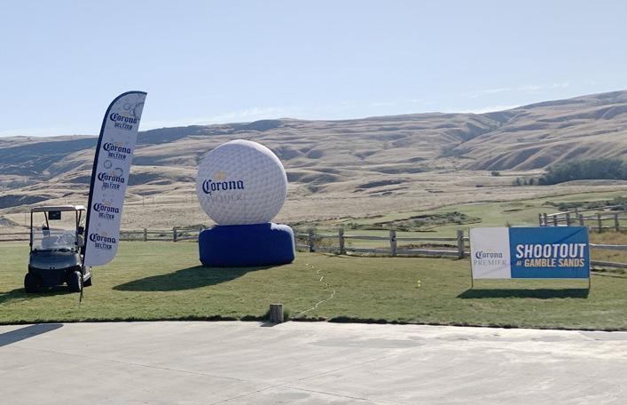 Hreturns July 23-34 register today ow could we not go back and do it all again? Last summer’s Corona Premier Shootout at Gamble Sands was one of the most memorable events we’ve ever staged, and the consensus for the 112 par ticipants was it would need to be repeated. So that’s exactly what we’re doing. The event will return July 23-24 to one of the state’s most beloved courses for two days of unbelievable fun, competition, and more laughs than you can shake a 48-inch driver at. David McLay Kidd’s awesome Sands Course has been one of our favorites since the day it opened nearly eight years ago, mixing firm, linksy golf on amazing fescue turf with amazing views over the Columbia River. We can’t get enough of it and everyone that entered in 2021 said much the same. On both the Saturday and Sunday you experience 18 magical holes of a two-person Best Ball competition with Gross and Net divisions and extra prizes for KPs (4), long drive and straight drive. On Saturday evening, we’ll hang out on the wild Cascade Putting Course (also