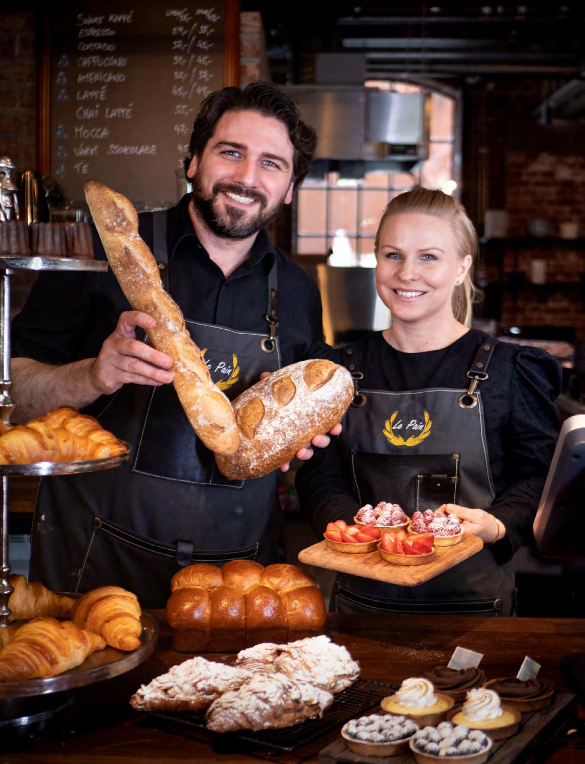 Ta med deg en kaffe og kanelbolle, og sett deg på bryggen eller kom inn i varmen og kjenn duften av nystekte brød og rundtstykker. Velkommen!